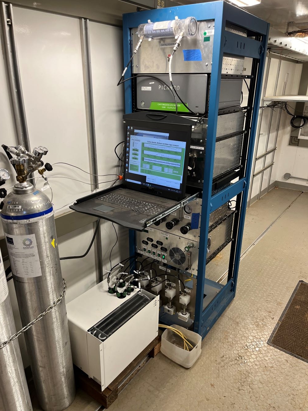 The precision gas system (PGS) is an atmospheric trace gas monitoring system, measuring continuous CO2 and CH4 at tower sample heights of 2m, 4m, 25m, and 60m above ground level. It is a combination of two systems: (1) gas processing components that control moisture and pressure and coordinate measurements of calibration cylinders, and (2) the Cavity Ringdown Spectrometer produced by Picarro, Inc.