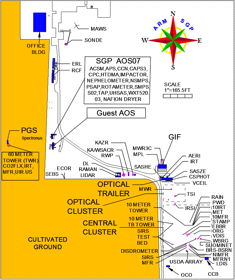 ARM has placed more than 50 instrument platforms or suites at the SGP observatory, including: