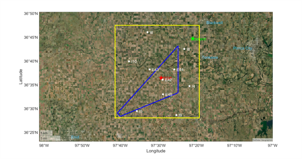 The ArcticShark will take off and land from Blackwell-Tonkawa Municipal Airport (BKN, 36°44’41″N 97°20’57″W). Flights will be limited to a rectangular operating area bounded by the following four corners: