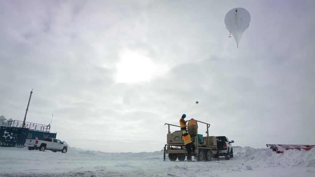 The sensors are strung along tethered balloons 13 feet in diameter and fitted with 35-meter-square “helikites” that help steer the balloon through the clouds. A Sandia video captured the whole process in 2017.